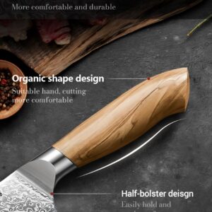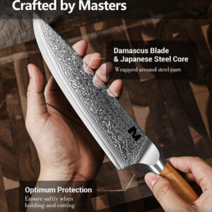 The blade is meticulously forged from 67 layers of Damascus steel, with a VG-10 high-carbon core, ensuring exceptional sharpness, strength, and edge retention.