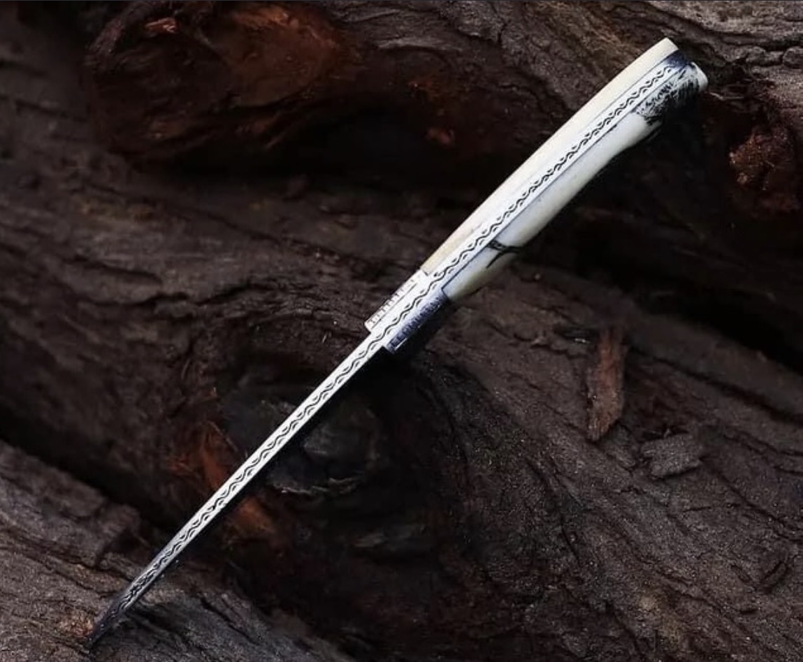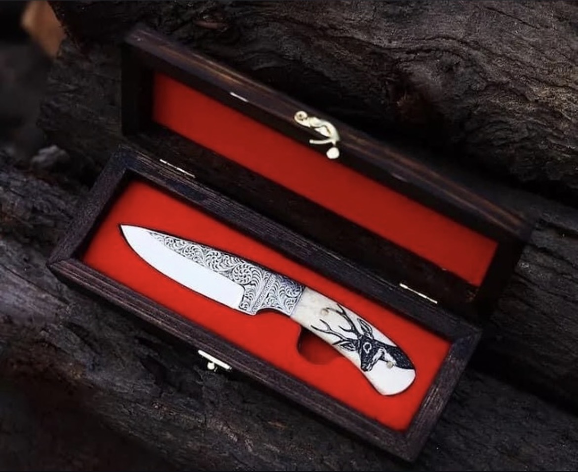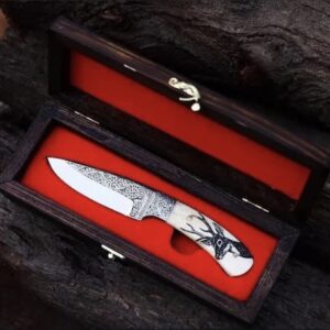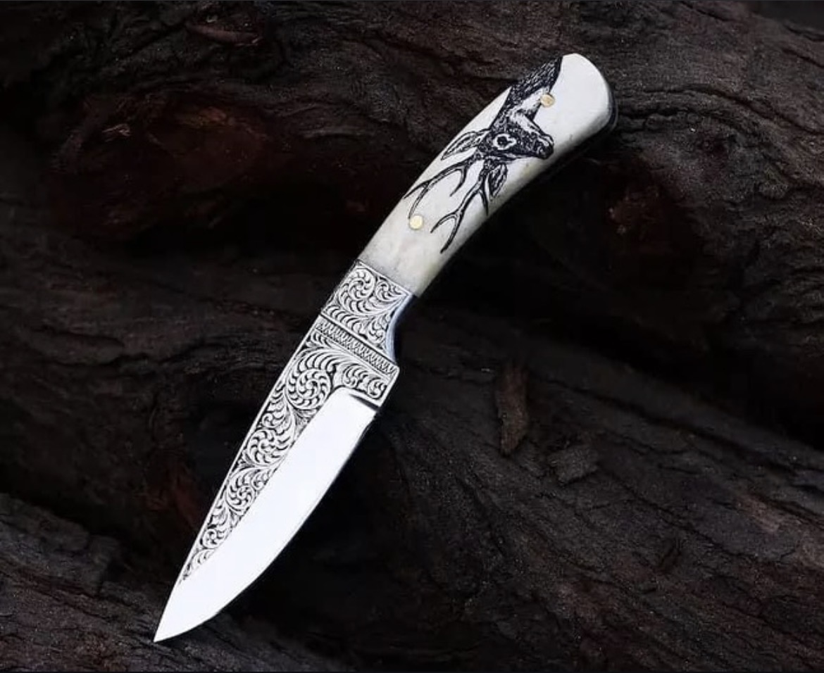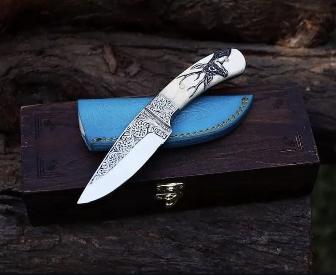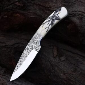 The Stag’s Grace Handmade Engraved Skinner Knife – Bone Handle Masterpiece